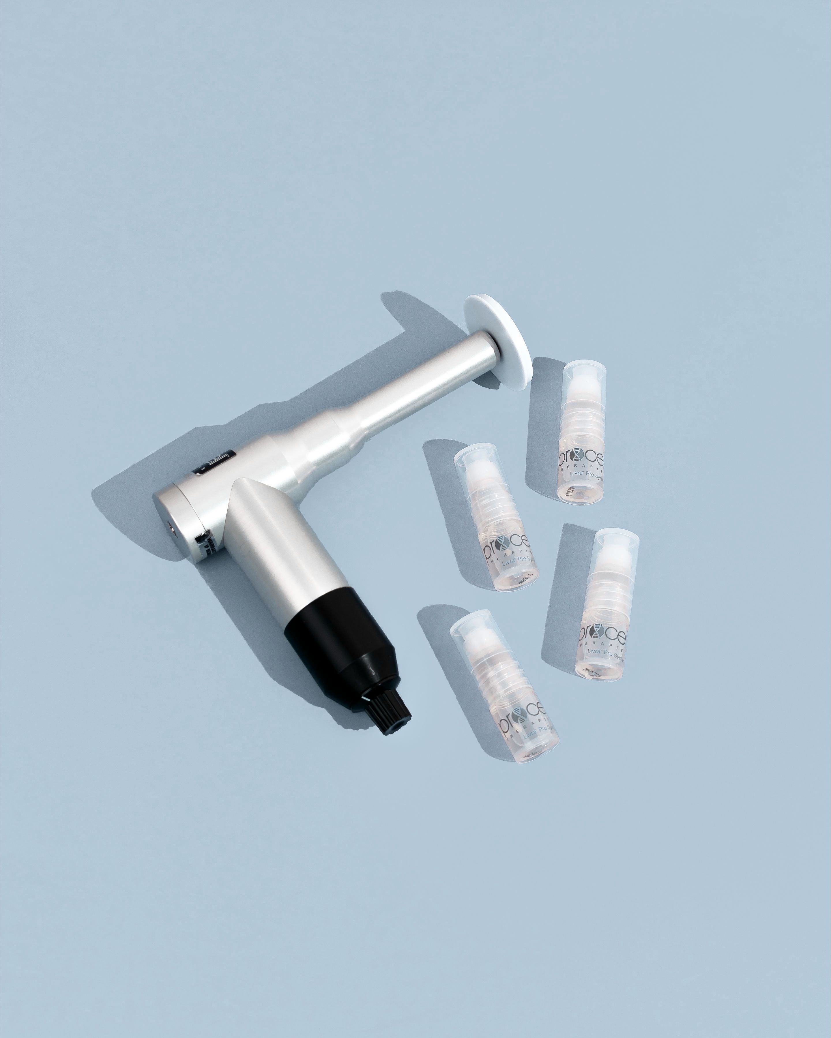 Human bone marrow-derived serum is applied immediately after microchanneling to penetrate the skin and deliver high concentrations of growth factors that depending on the desired outcome, can improve the appearance of acne scarring, skin texture, hyperpigmentation, and reduce the appearance of fine wrinkles.